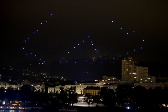 Klangwolke («Облако звука») показали потрясающее шоу. Квадрокоптеры в количестве пяти сотен приковали к себе всеобщее