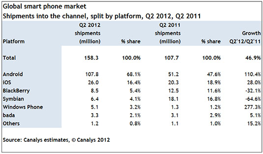 издание Canalys, из 158 миллионов проданных в мире смартфонов, более 108