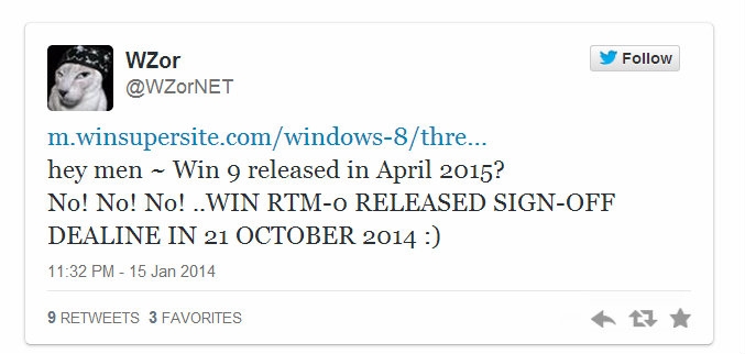 Ранее распространялась информация о том, что насладиться работой с Windows 9 можно будет не раньше апреля 2015 года. А перед выходом RTM-версии доступными станут три промежуточные сборки.